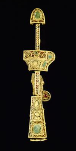전 세계에서도 극소수 지역에서만 발견되는 독특한 형태의 황금보검. 도대체 이 칼의 정체는 무엇일까요? 붉은 석류석과 유리 장식에 감춰진 비밀은 아무도 알 수 없었습니다.