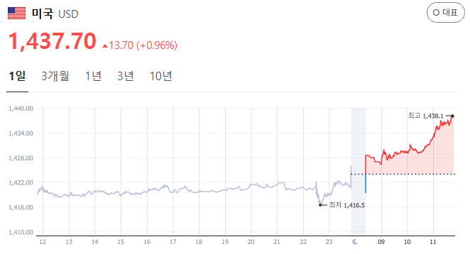 - 현재 상황: 1430원을 돌파할 가능성이 높아지고 있음.