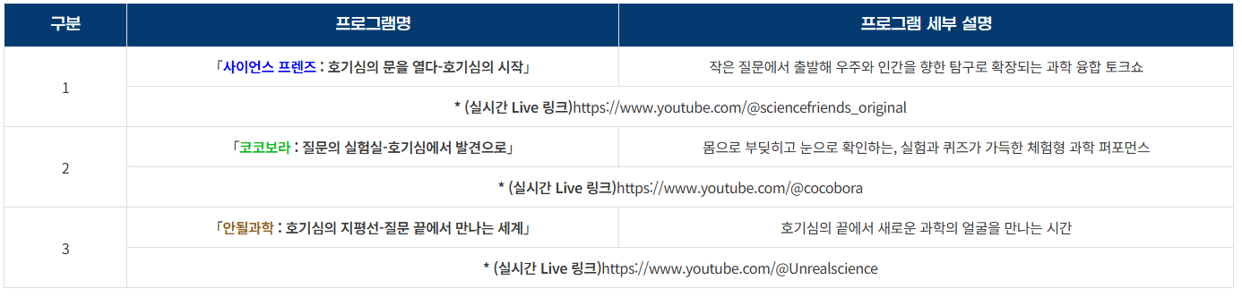 - 과학 퀴즈, AR 탐험 등 ‘즐기며 배우는’ 프로그램 다수