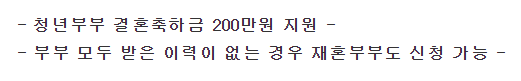 - 지원 금액: 결혼축하금 200만원을 지급합니다.
