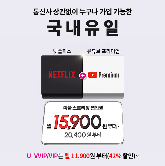 - 넷플릭스 와 유튜브 프리미엄 을 동시에 구독하면 할인 혜택을 받을 수 있어요. 예를 들어, LG U+의 경우 두 서비스를 함께 구독하면 월 1,520원 정도 할인받을 수 있답니다.