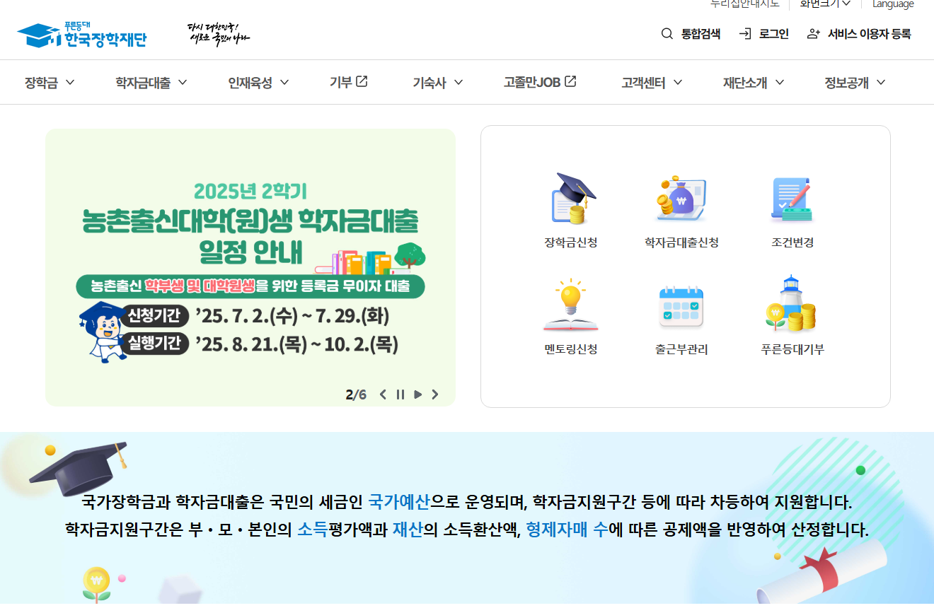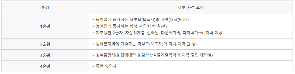- 대상: 국내 대학(원)에 재학 중인 농어촌 출신 학생