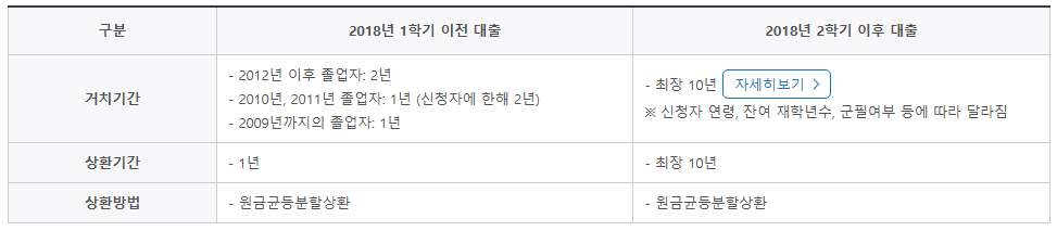 - 상환 시점: 학부 졸업 후 2년 뒤부터 분할 상환 가능