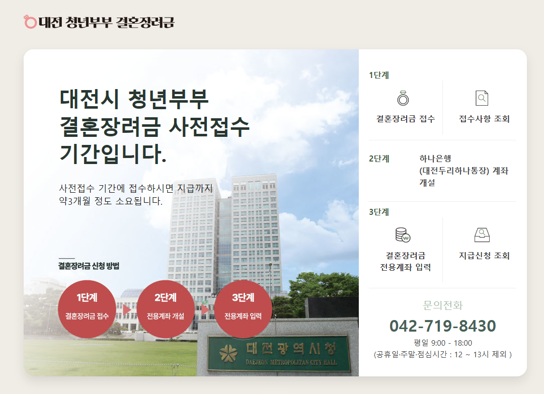 대전시에 거주하고 있다면, 그리고 올해 결혼을 했거나 계획 중이라면 꼭 이 혜택을 놓치지 말고 신청해보세요. 지원 대상 확대 계획도 논의 중인 만큼, 앞으로 더 많은 가정이 혜택을 받을 수 있기를 기대합니다.