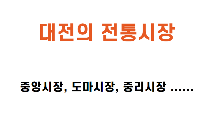 대전시에는 50개 이상의 전통시장이 있습니다. 그 중 가장 유명한 시장은 다음과 같습니다. 아마 모든 곳이 유명하겠지만 아래의 시장만 표시하였습니다. 혹시나 우리동네 시장이 빠졌다고 서운해하지 않으셨으면 해요.
