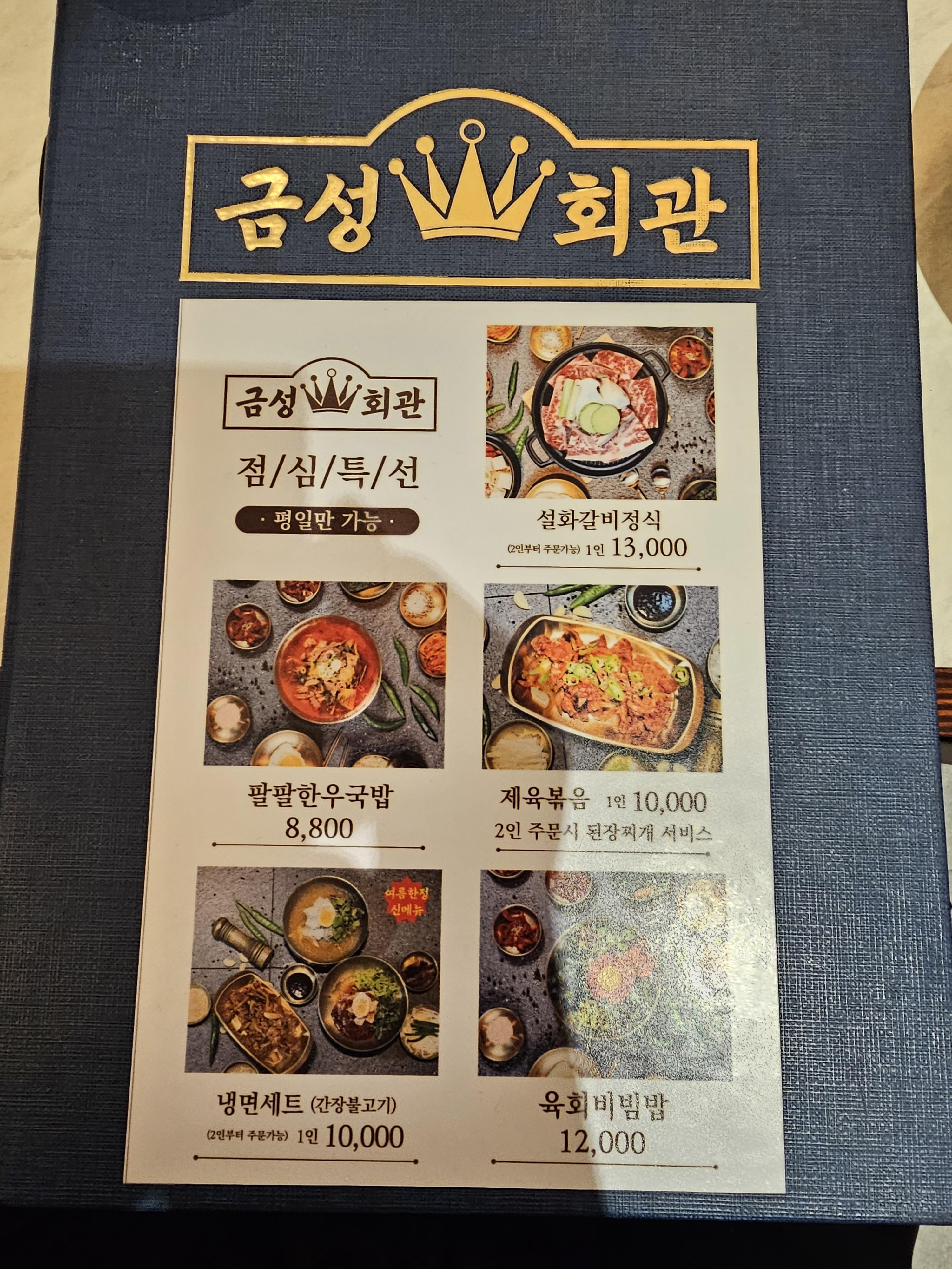 - 금성회관은 넓고 쾌적한 실내 공간을 갖추고 있어 단체 손님도 편하게 이용할 수 있습니다.