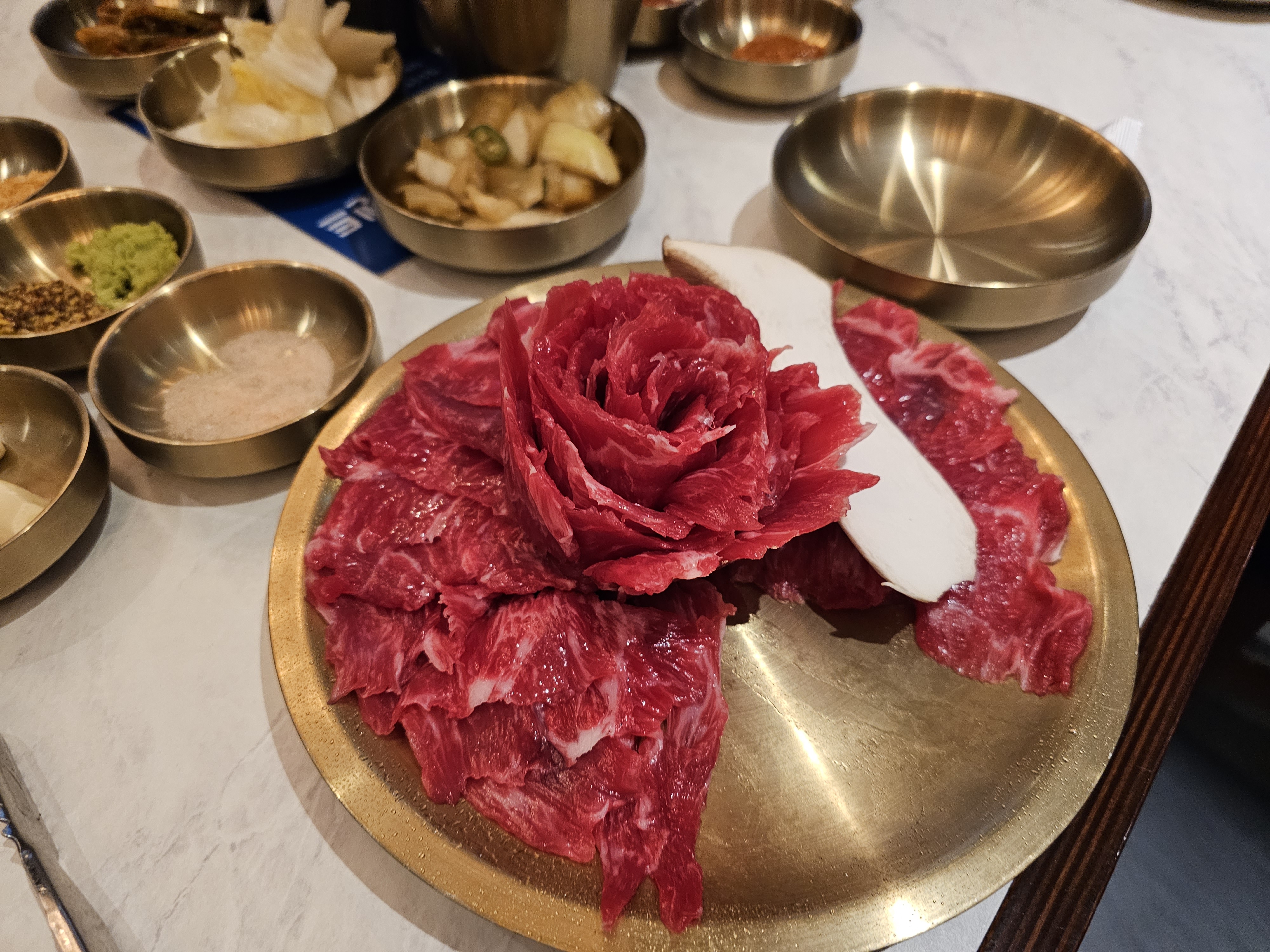- 다양한 부위의 소고기, 돼지고기를 맛볼 수 있으며, 밑반찬과 쌈 채소도 다양하게 제공됩니다.
