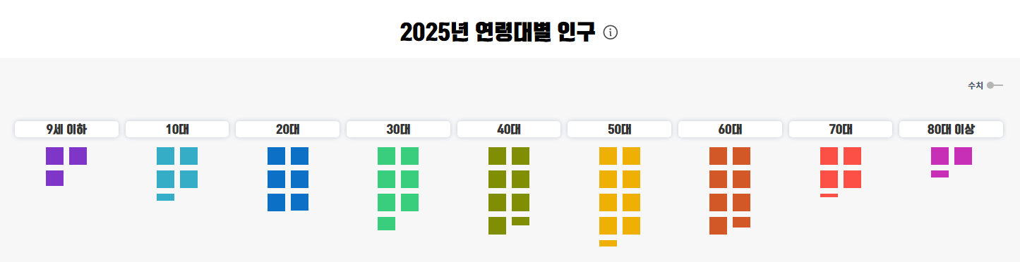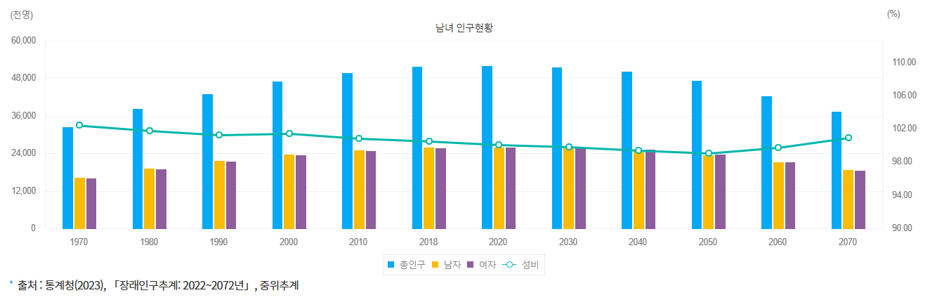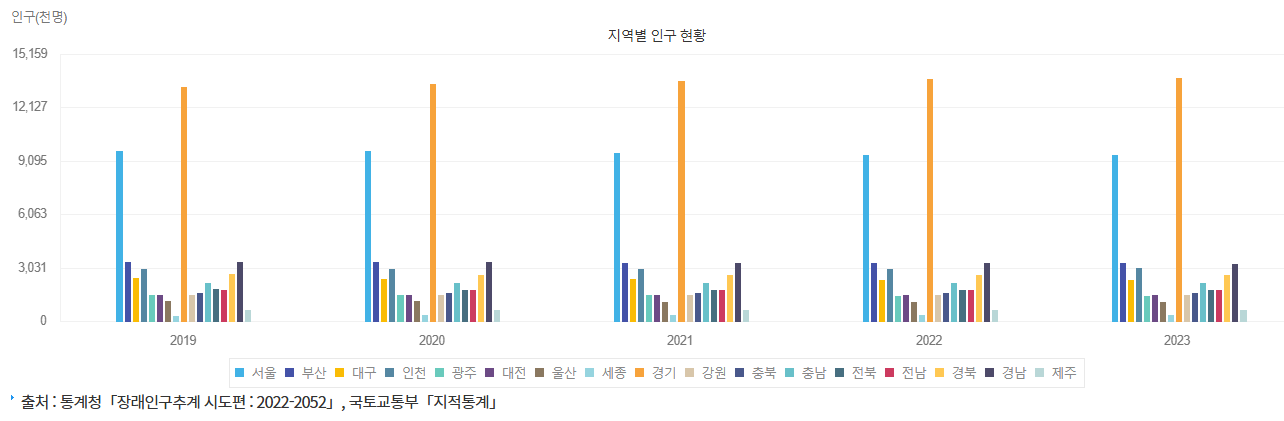 - 지방: 대구, 광주, 대전, 울산 등 일부 지방 대도시는 인구가 소폭 감소하는 모습을 보이고 있으며, 특히 젊은 층의 수도권 유출 현상이 두드러집니다.