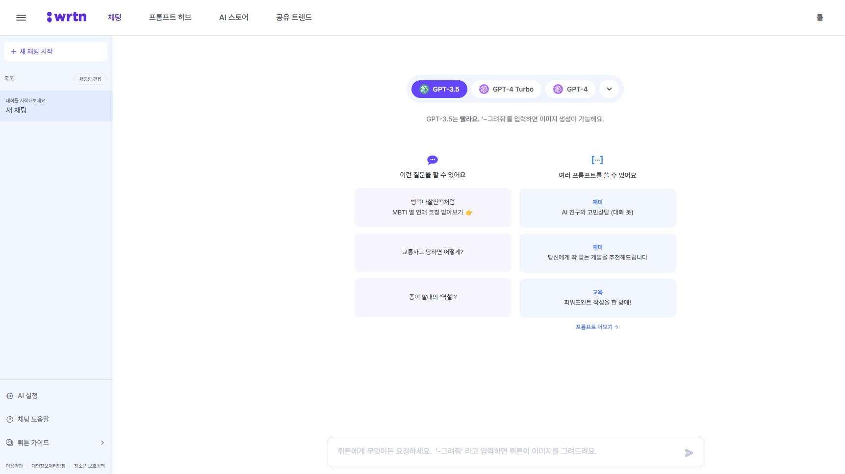 뤼튼(WRTN)은 네이버의 초거대 생성형 인공지능 모델인 하이퍼클로바 엑스(HyperCLOVA X)를 기반으로 만들어진 글쓰기 도구입니다.