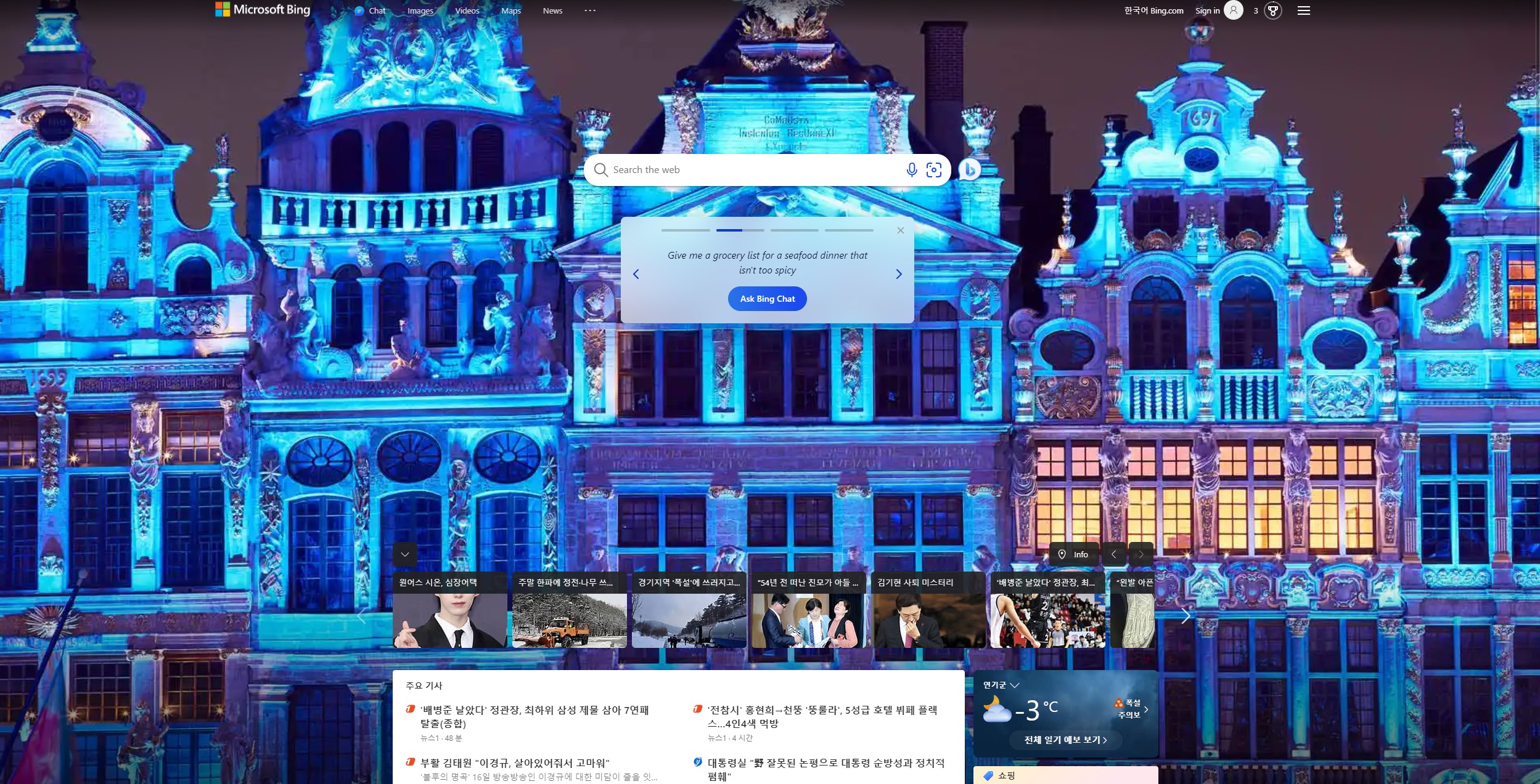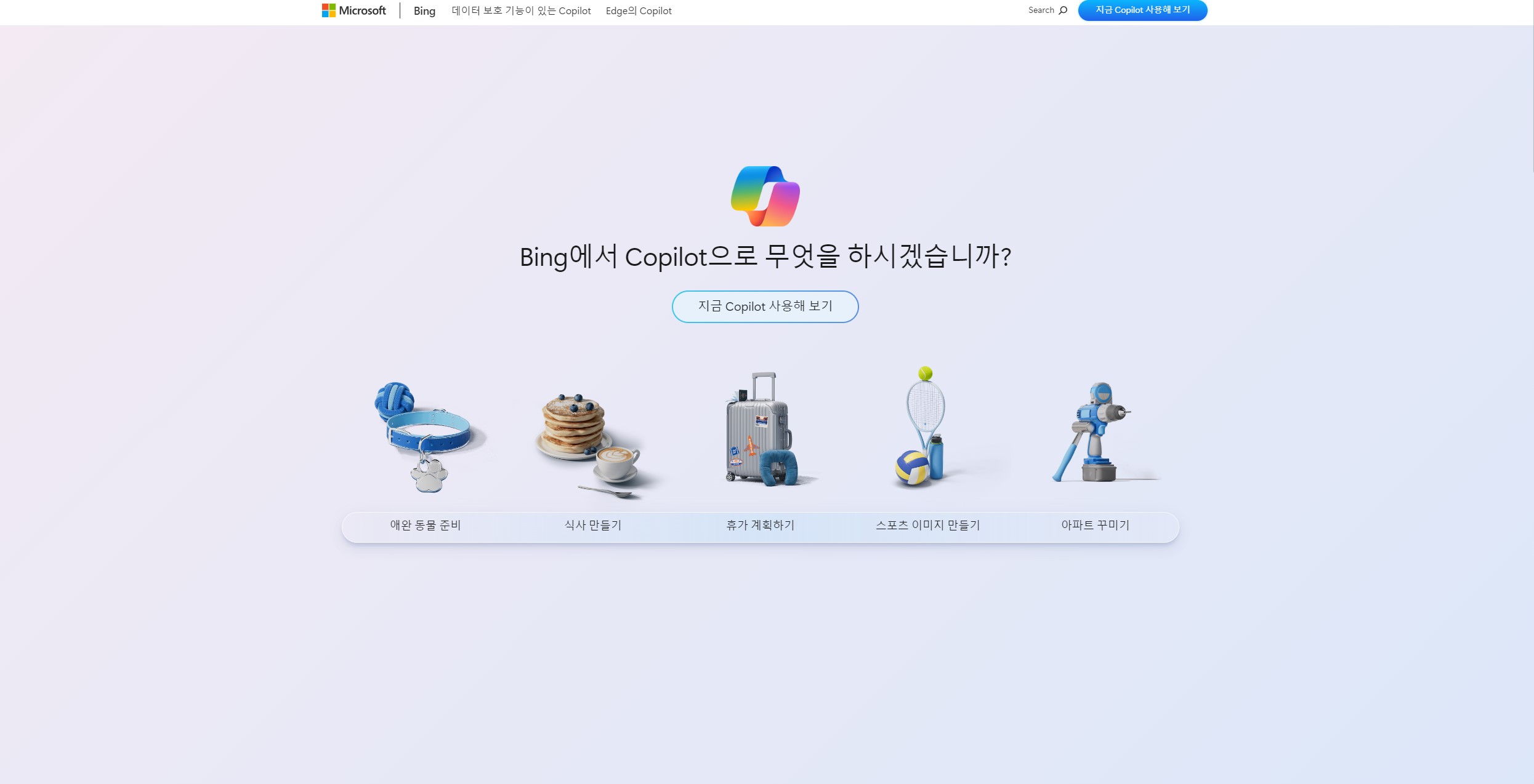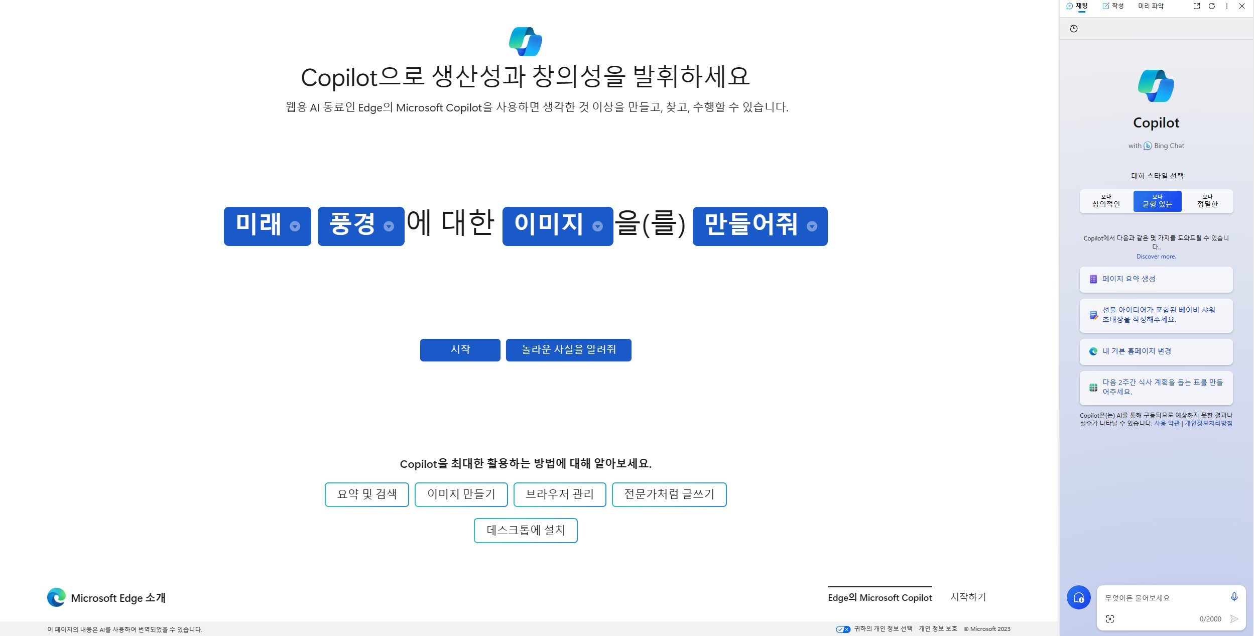 하지만 현재로는 엣지로 접속했을 때에만 코파일럿이 접속이 가능하고 다른 브라우저로 접속할 경우에는 빙(bing)으로 접속하면 활용할 수 있습니다.