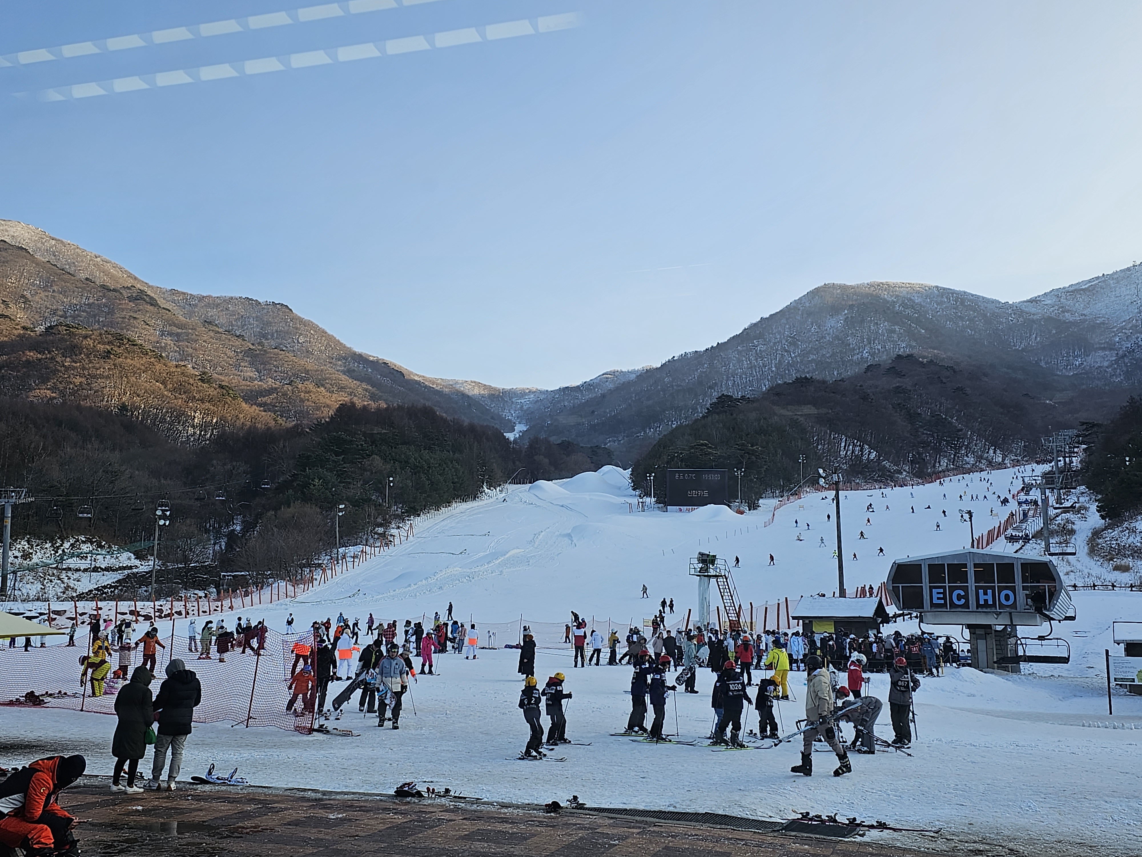 요즘은 스키계절이어서 평일에도 곤돌라의 경우에는 오래 기다려야 합니다. 하지만 리프트는 오래 기다리지 않아도 탈수 있습니다.