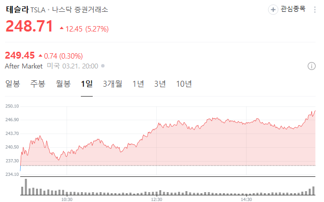업종별로는 부동산과 소재 업종이 1% 이상 하락한 반면, 통신서비스 업종은 1% 이상 상승했습니다. 또한, 테슬라는 5%이상의 상승을 보이면 최근의 부진을 극복하는 모습을 보였습니다.