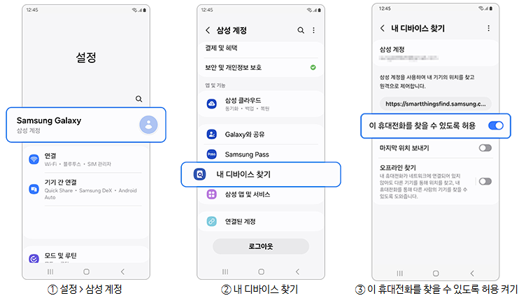 - 디바이스 찾기 기능 활성화: 설정에서 "이 휴대전화를 찾을 수 있도록 허용" 옵션을 ON으로 설정해 두어야 합니다.