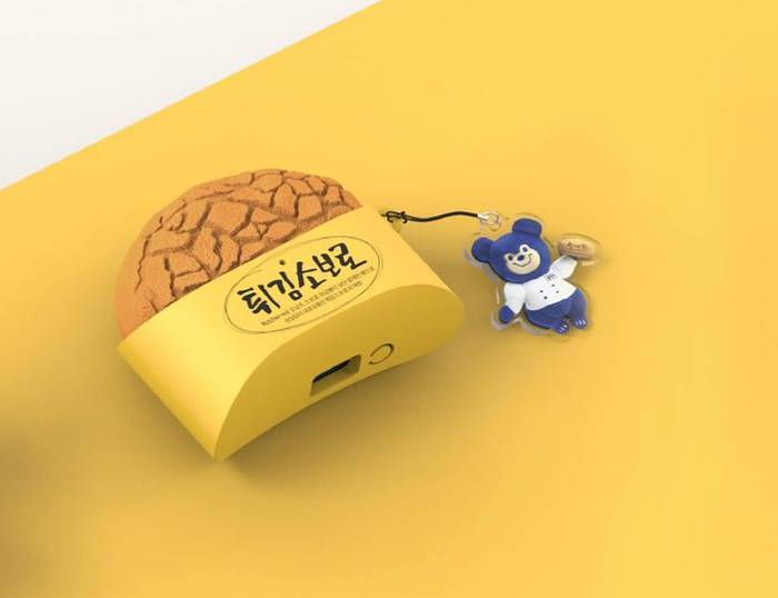 이번 협업에서 가장 눈에 띄는 건 튀김소보로의 바삭바삭한 질감과 노란색 포장지까지 디테일하게 재현된 점이에요. 한 손에 쏙 들어오는 아담한 크기로 제작되었고, 케이스를 열면 마치 실제 빵을 열었을 때처럼 짙은 갈색 팥소가 디테일하게 표현되어 있어요. 정말 세심한 디자인이죠? 또한, 성심당의 마스코트인 '곰식이' 키링도 함께 제공되기 때문에 이 케이스는 단순한 액세서리가 아니라 소장 가치가 높은 상품으로 느껴집니다.