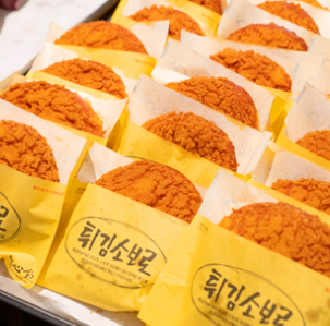 튀김소보로는 성심당의 대표적인 메뉴로, 많은 사람들이 사랑하는 바삭한 빵이에요. 이 튀김소보로가 삼성전자의 갤럭시 버즈3 시리즈 케이스로 탄생하면서 많은 이들에게 웃음을 주고 있는데요, 특히 케이스 외형은 진짜 튀김소보로를 보는 듯한 느낌을 줍니다. 세부적인 디자인 요소 하나하나가 신경 써서 제작되었고, 특히 빵 속의 갈색 팥소까지 구현한 부분은 굉장히 독창적이에요.