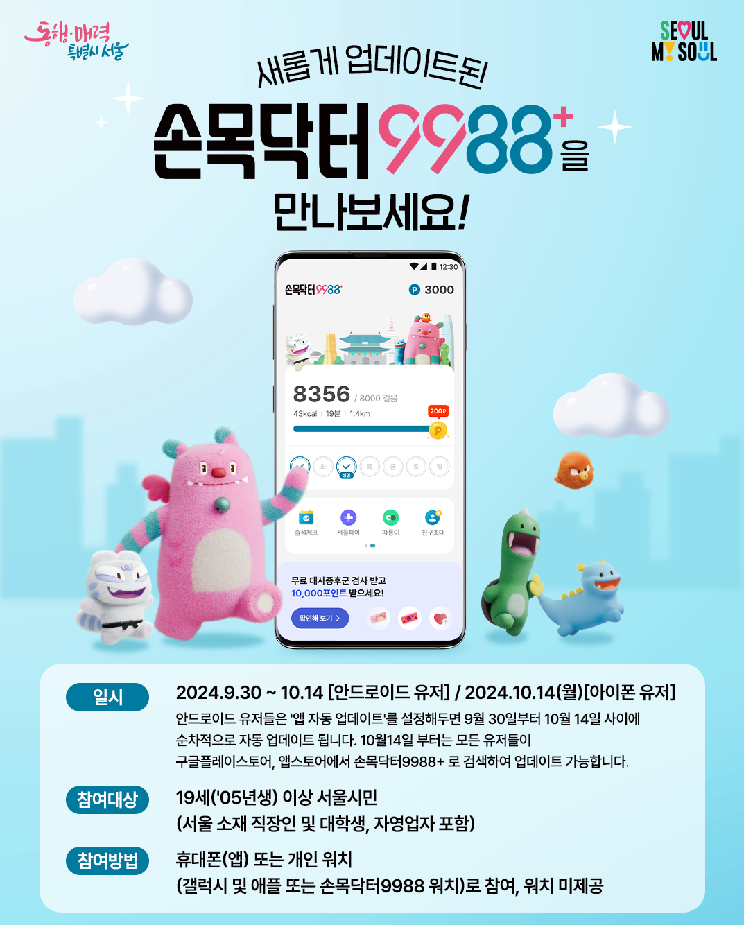 서울시민 여러분, 손목닥터9988+와 함께 더 건강하고 행복한 삶을 만들어보세요.