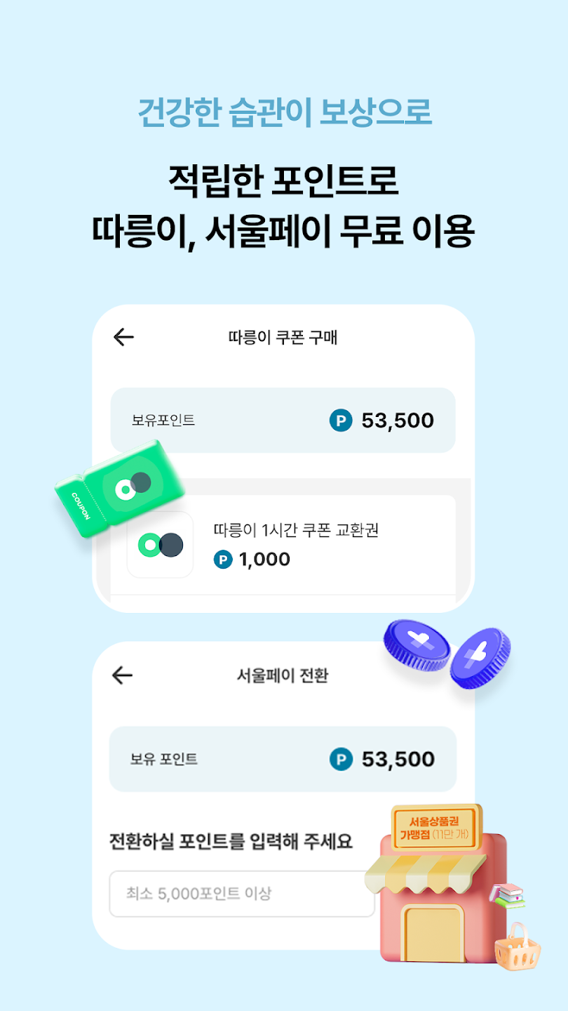 - 걷기와 건강 미션: 프로그램은 걷기, 식단 관리 등 다양한 미션을 통해 최대 10만 포인트를 제공해요. 이 포인트는 서울페이로 전환하여 사용할 수 있어 일석이조의 혜택을 누릴 수 있답니다. 운동도 하고, 포인트로 혜택도 받고, 정말 좋은 기회죠!