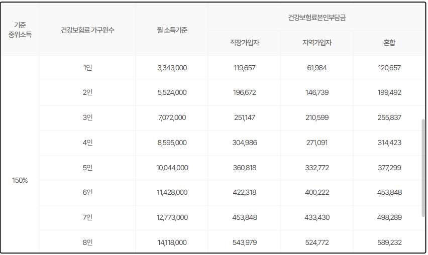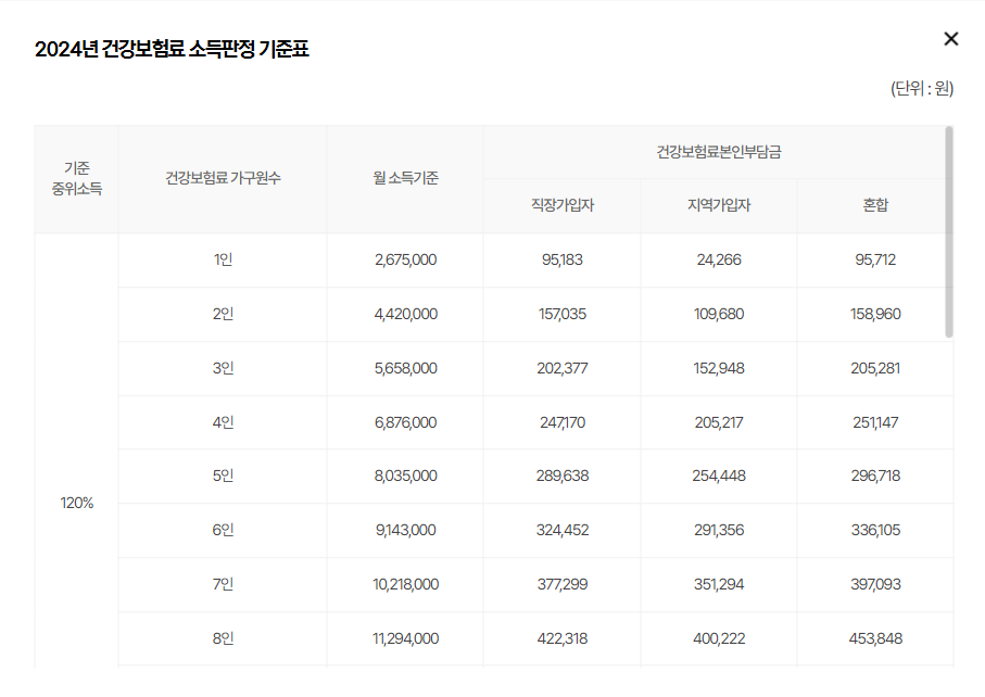 - 소득요건 : 2024년 2월 건강보험료 기준 2024년 소득기준표