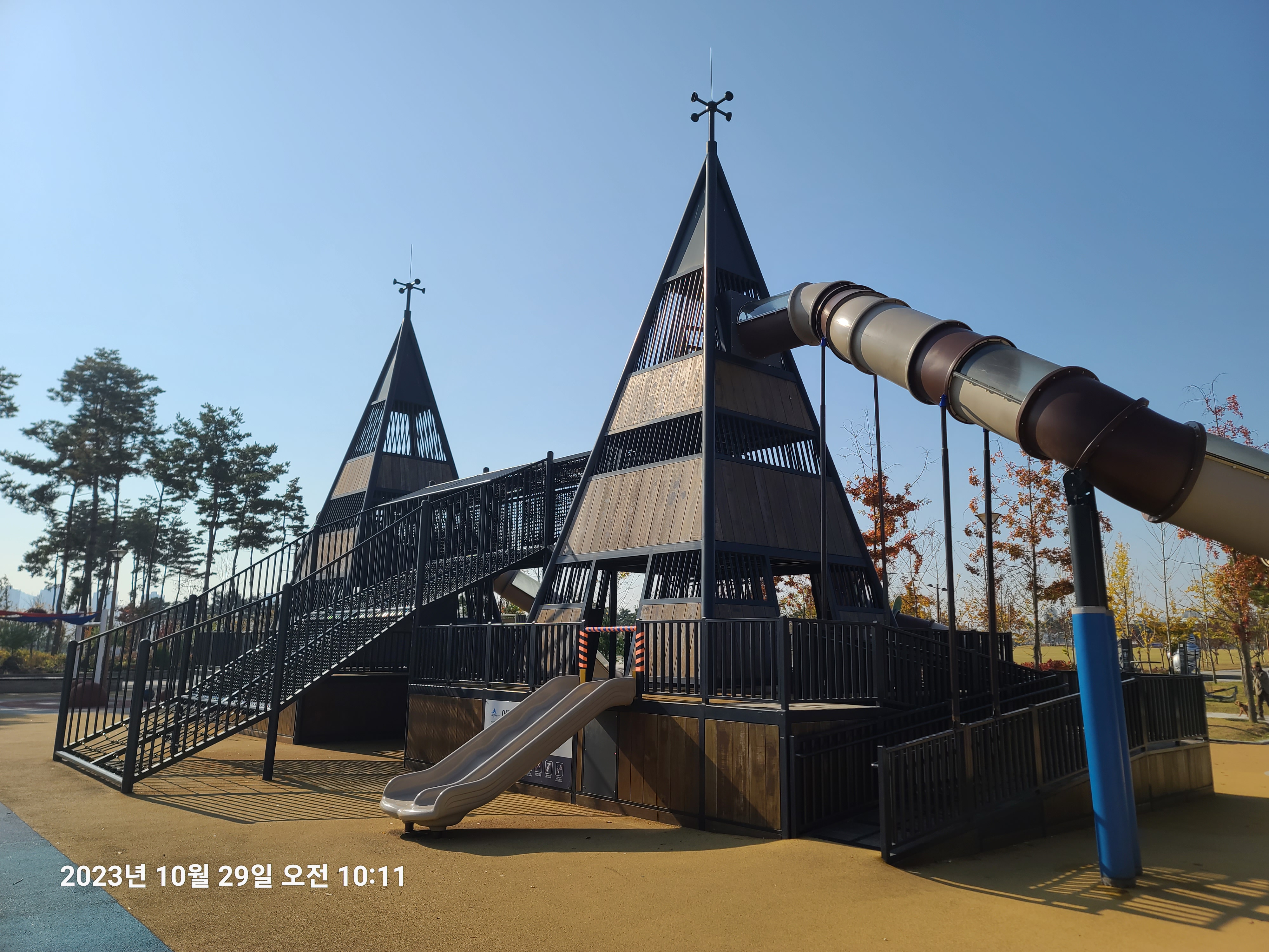 세종 중앙 공원 놀이터의 다양한 놀이기구와 시설