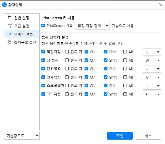 모드 지정을 통해서 다양하게 캡쳐를 진행할 수 있습니다. 일반적으로는 사각형 캡쳐를 하지만 4가지 모드의 캡쳐를 할 수 있습니다. 4가지를 골라서 해보면 금방 그 기능을 배우실 수 있습니다.