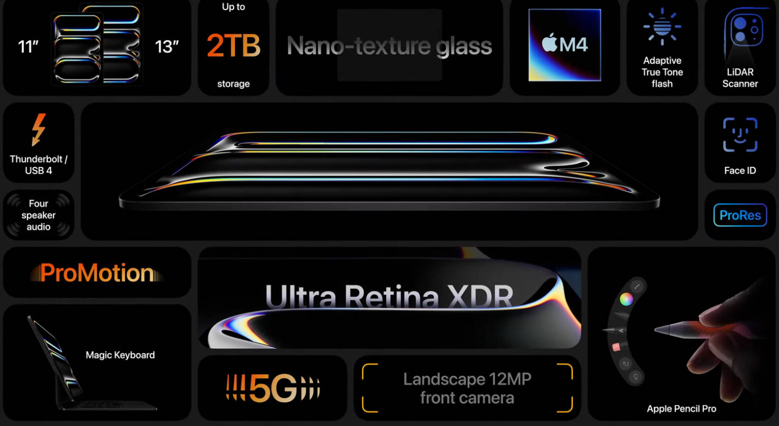 - Thunderbolt 지원: 새로운 iPad Pro는 Thunderbolt를 지원하여 고속 외장 드라이브 및 기타 액세서리를 연결할 수 있습니다.