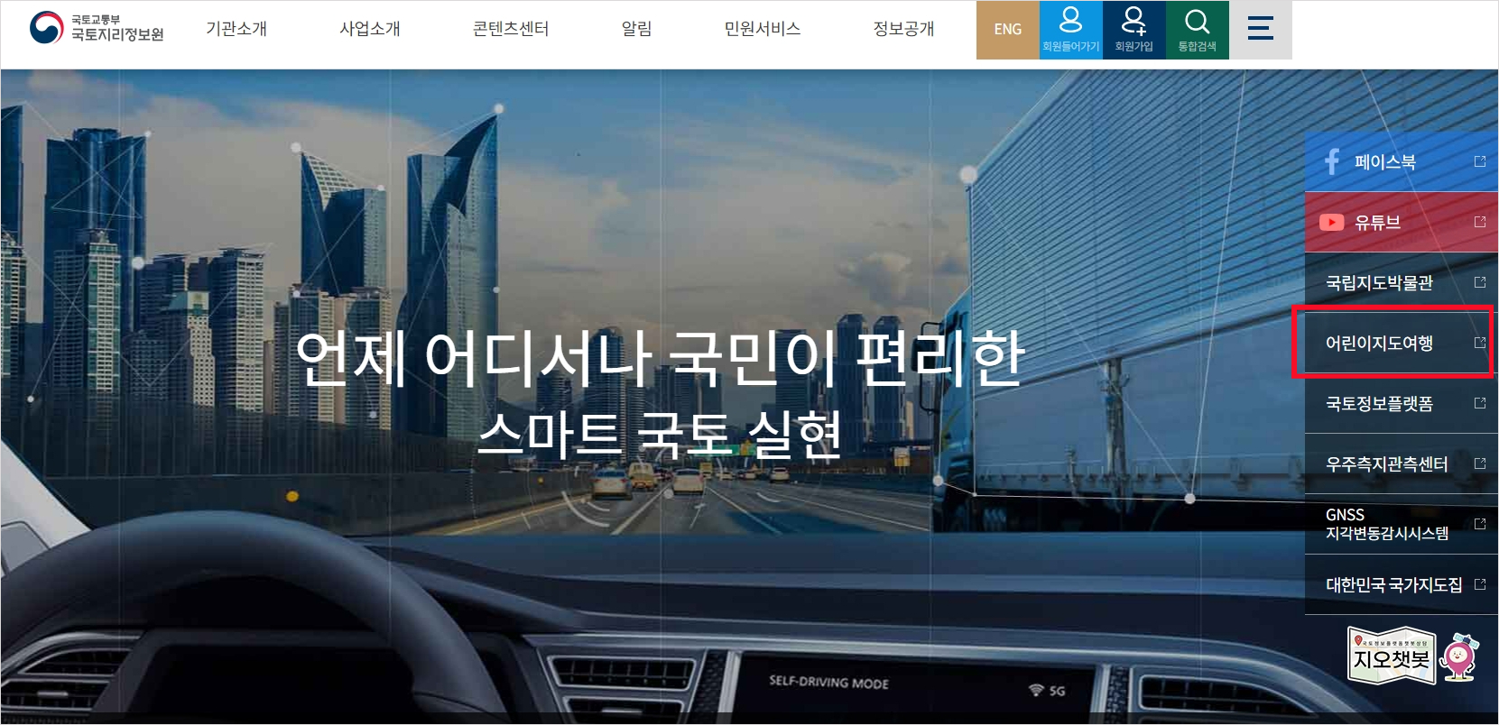 국토지리정보원 홈페이지 방문