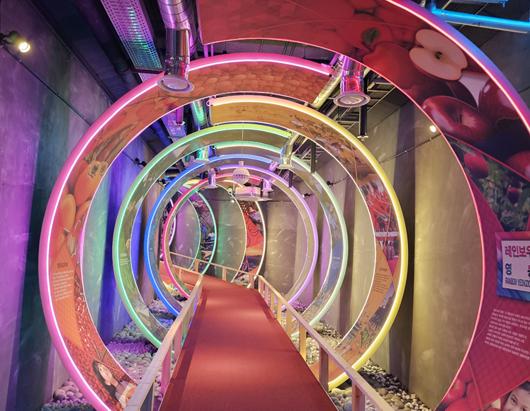 와인터널에 도착하면 가장 먼저 눈에 띄는 것은 거대한 와인병 형태의 입구입니다. 높이 15m의 이 건축물은 SNS에서도 핫플레이스로 유명한데요. 내부로 들어가면 마치 유럽의 고전 와이너리에 온 듯한 분위기가 펼쳐집니다.