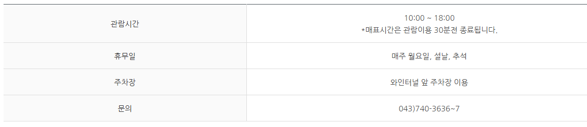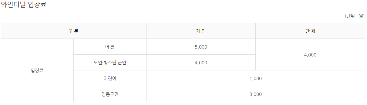 - 입장료: 성인 10,000원 (와인 시음 3종 포함)