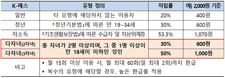 K-패스 제도, 다자녀 가구를 위한 새로운 혜택 확장
