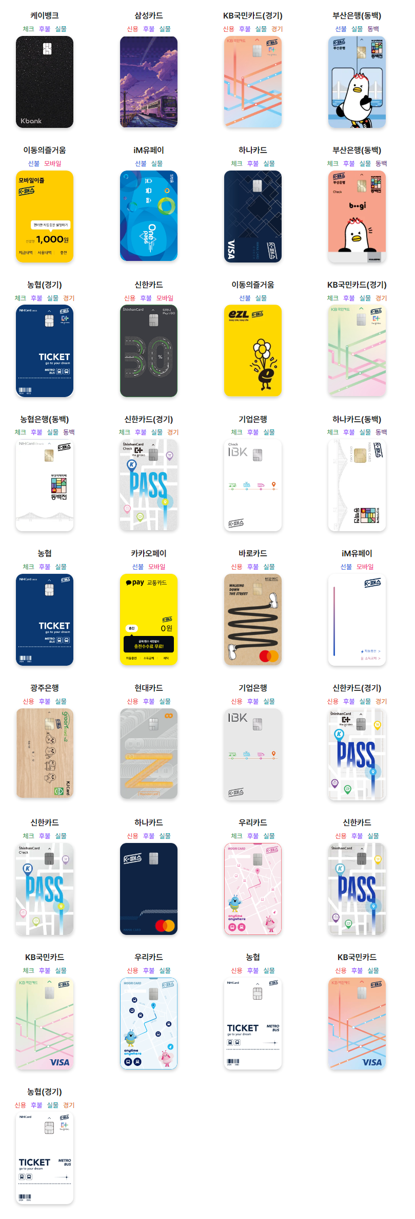 KB국민카드👆️ 현대카드👆️ 삼성카드👆️ 신한카드👆️ NH농협카드👆️ 하나카드👆️우리카드👆️현대카드👆️카카오페이👆️DGB유페이👆️'K-패스 카드' 출시 카드사들이 전국적으