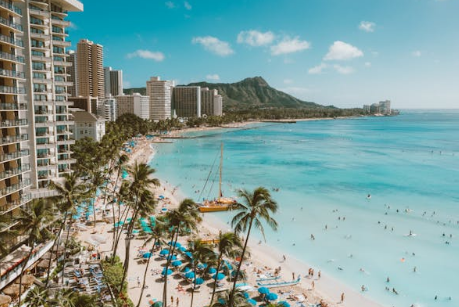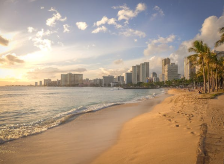 와이키키 해변은 하와이에서 가장 유명한 해변으로, 백사장과 맑은 바다로 유명합니다. 이곳에서는 수영, 서핑, 일광욕 등 다양한 해양 액티비티를 즐길 수 있습니다. 주변에는 고급 리조트와 쇼핑몰, 레스토랑이 많아 편리하게 이용할 수 있습니다.