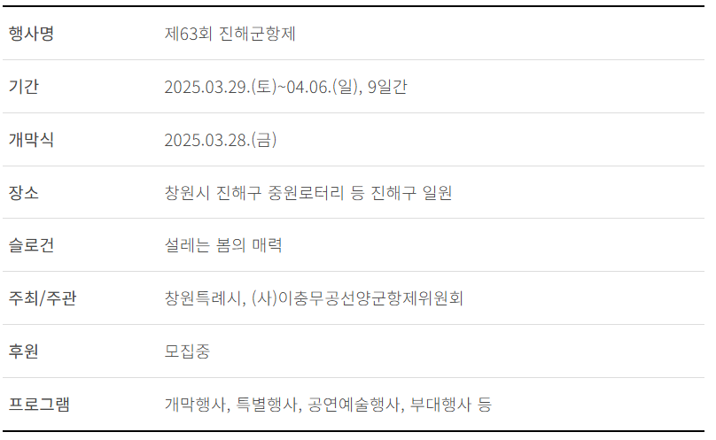 - 행사 기간: 2025년 3월 28일(금)부터 4월 6일(일)까지