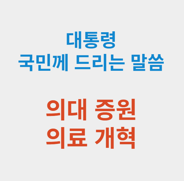 대통령의 의대 증원에 대한 국민께 드리는 말씀을 진행하였습니다. 의대 증원에 대해서는 확고하며 미래를 위한 결정이었다고 이야기하였습니다. 또한 대한의사협회의 행동을 비난하면서 국민을 위한 일이라고 강조하였습니다.