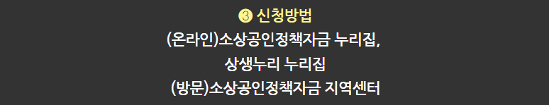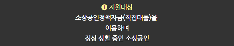 - 소상공인정책자금을 보유한 업체: 공단의 직접대출을 이용 중이며, 이자납부기간이 끝난 후 원리금을 1회 이상 납부한 업체.