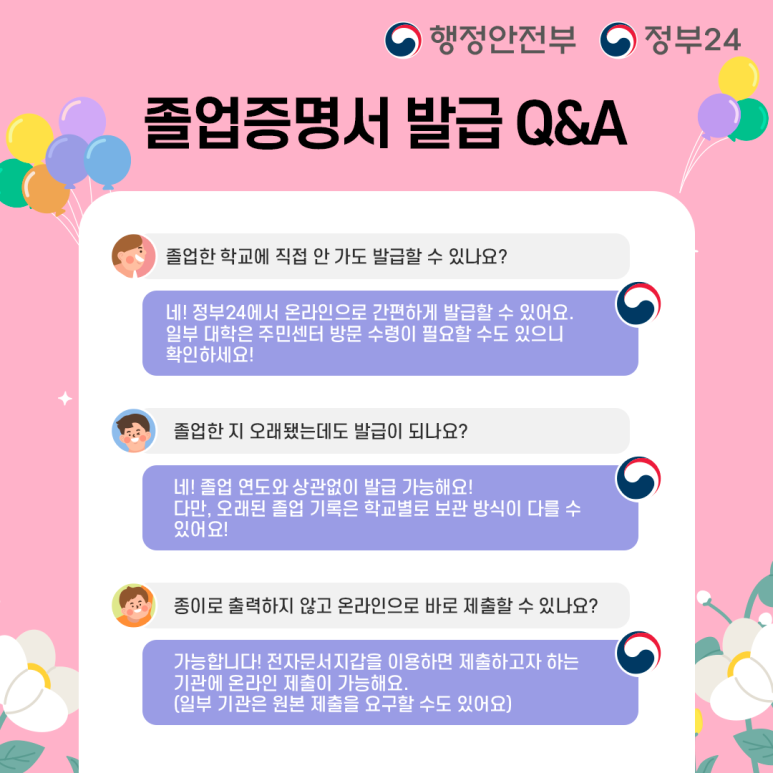 정부24 졸업증명서 발급 시 유의사항