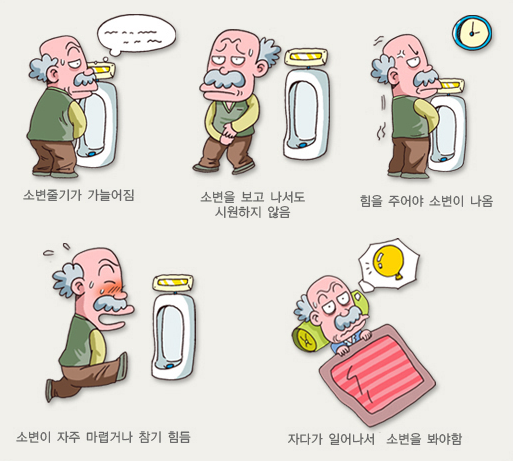 - 소변을 보는 데 시간이 걸림