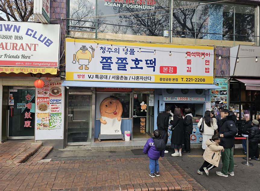 쫄쫄호떡은 청주 성안길에 있답니다. 쫄쫄호떡은 그야말로 일품이에요. 대기 줄이 길어도 기다릴 만한 가치가 충분하답니다.