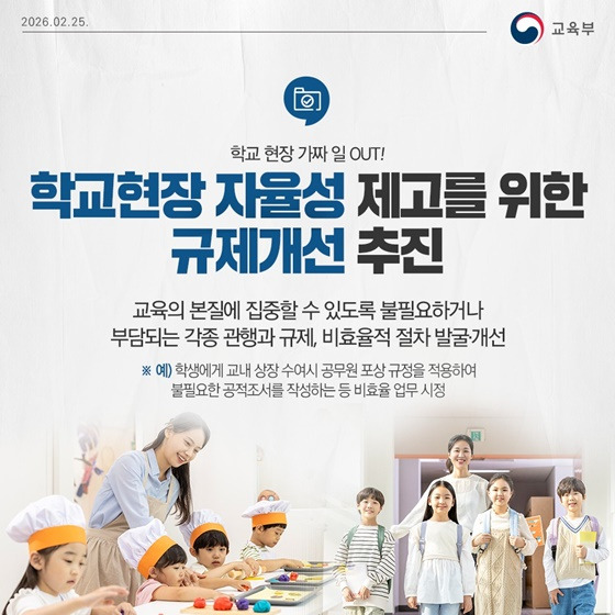 - 상장 수여 절차 간소화: 학생들에게 상장을 줄 때 공무원 포상 규정을 적용해 작성하던 불필요한 공적조서 작성 관행이 시정됩니다.