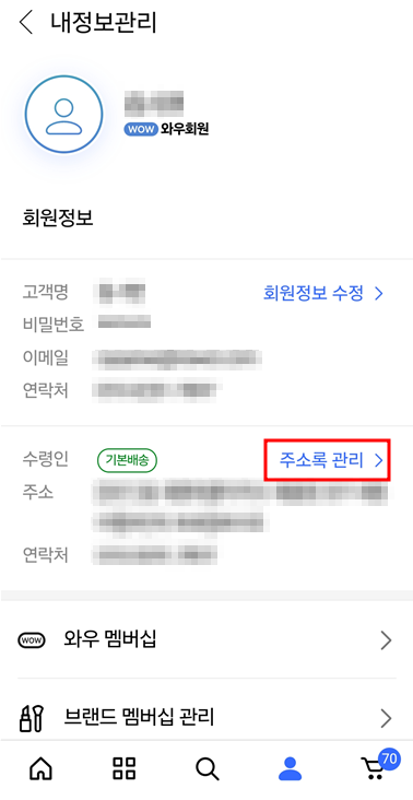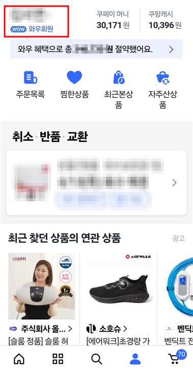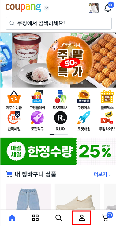 - 우측 하단 ‘마이쿠팡’ 아이콘 클릭