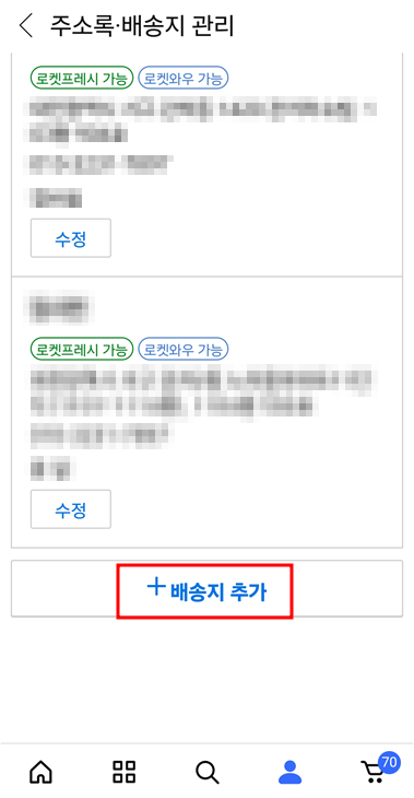 - 해당 주소가 로켓배송 가능 지역인지 자동 확인