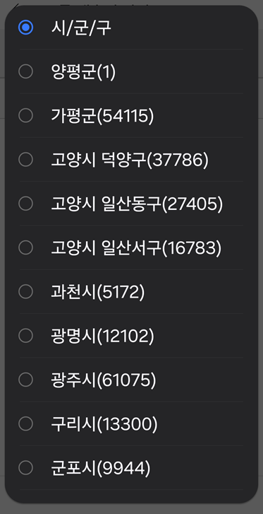 - 용인, 의왕, 의정부, 파주, 포천, 하남, 화성, 군포