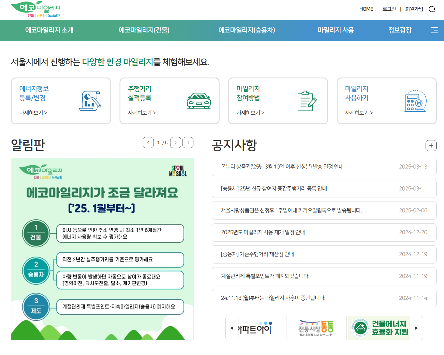 - 서울시민은 에코 마일리지에서 혜택 받을 수 있음