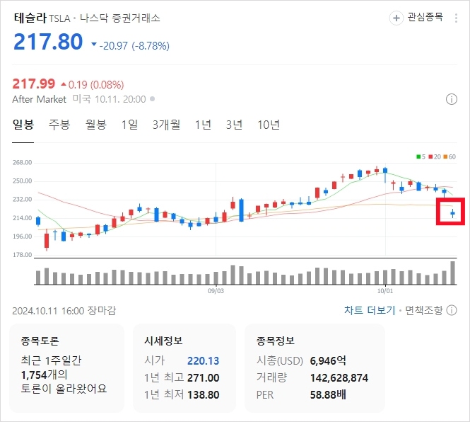 로보택시 행사 이후 테슬라 주가 급락