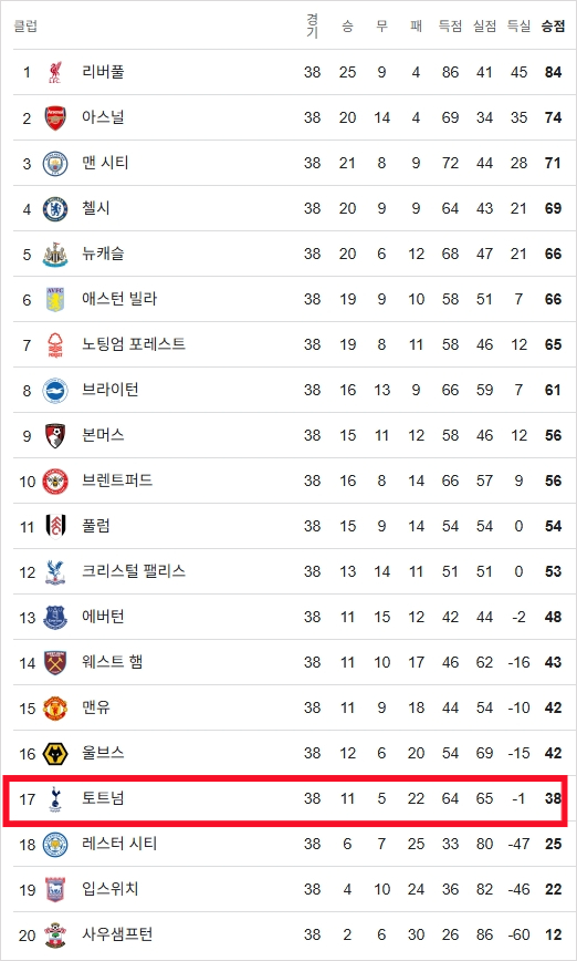 포스테코글루 감독이 해임된 가장 큰 이유는 바로 리그에서의 극심한 부진 때문이었습니다. 유럽에서의 성공과는 달리, 프리미어리그에서는 무려 22패를 기록하며 시즌을 17위로 마감했습니다. 이 순위는 구단 역사상 두 번째로 낮은 수준이며, 강등권을 간신히 벗어난 결과였습니다.