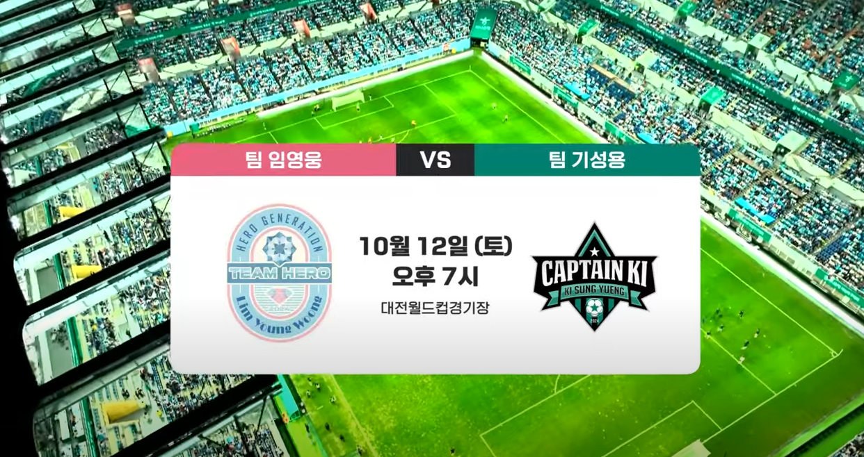 하나은행 자선축구대회에서 임영웅팀과 기성용팀이 축구와 선행이 만나는 특별한 날