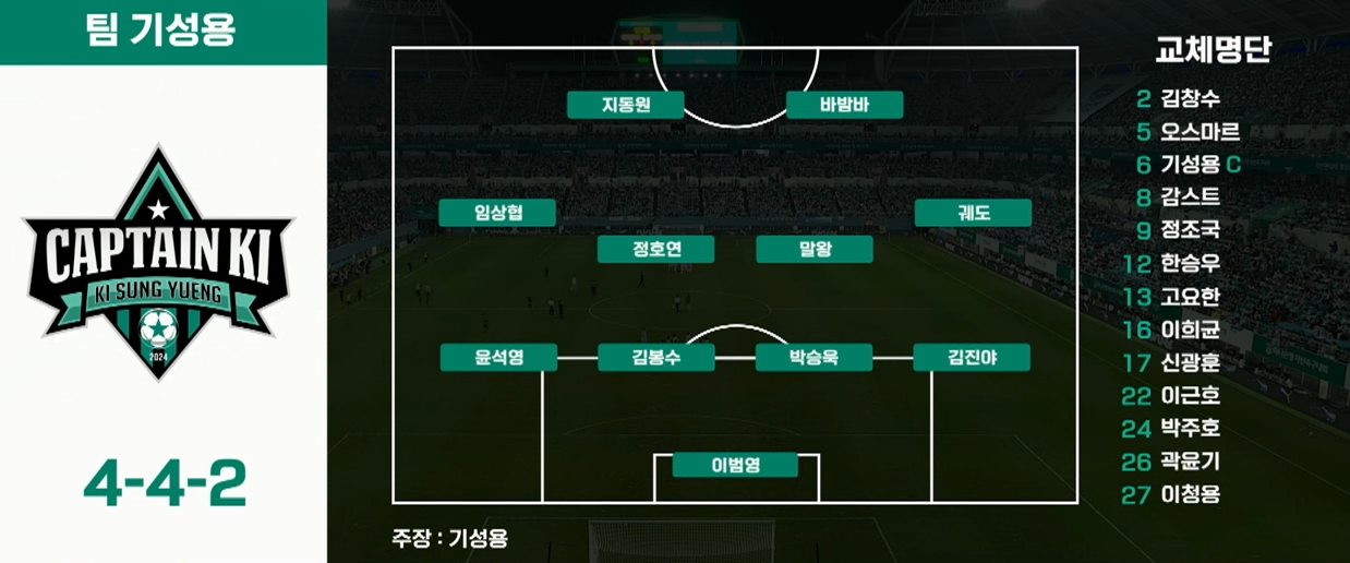 경기 초반부터 팀 히어로가 앞서 나갔습니다. 전반 12분, 이수빈의 코너킥을 오반석이 헤더로 마무리하며 1-0으로 리드했습니다. 그러나 팀 기성용 역시 이에 질세라 다양한 전략적 교체를 통해 경기를 따라갔고, 후반전에서 이희균의 마무리로 동점을 만드는 데 성공했습니다.