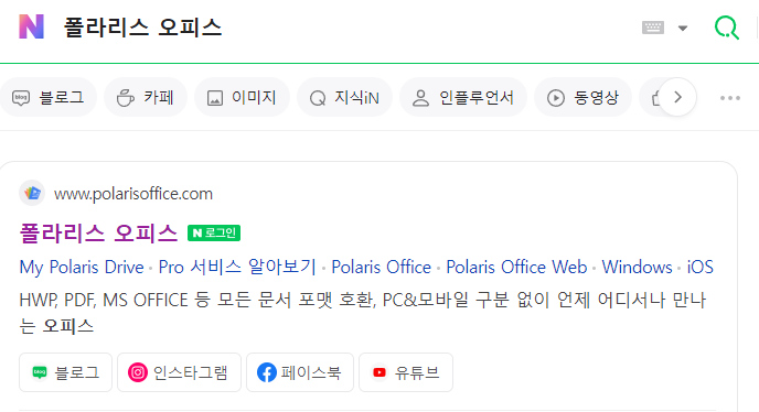 1. 네이버에서 폴라리스 오피스 검색하기