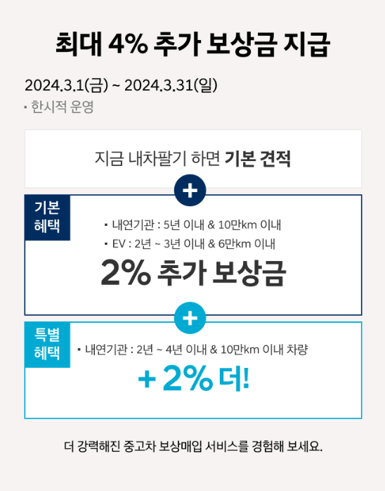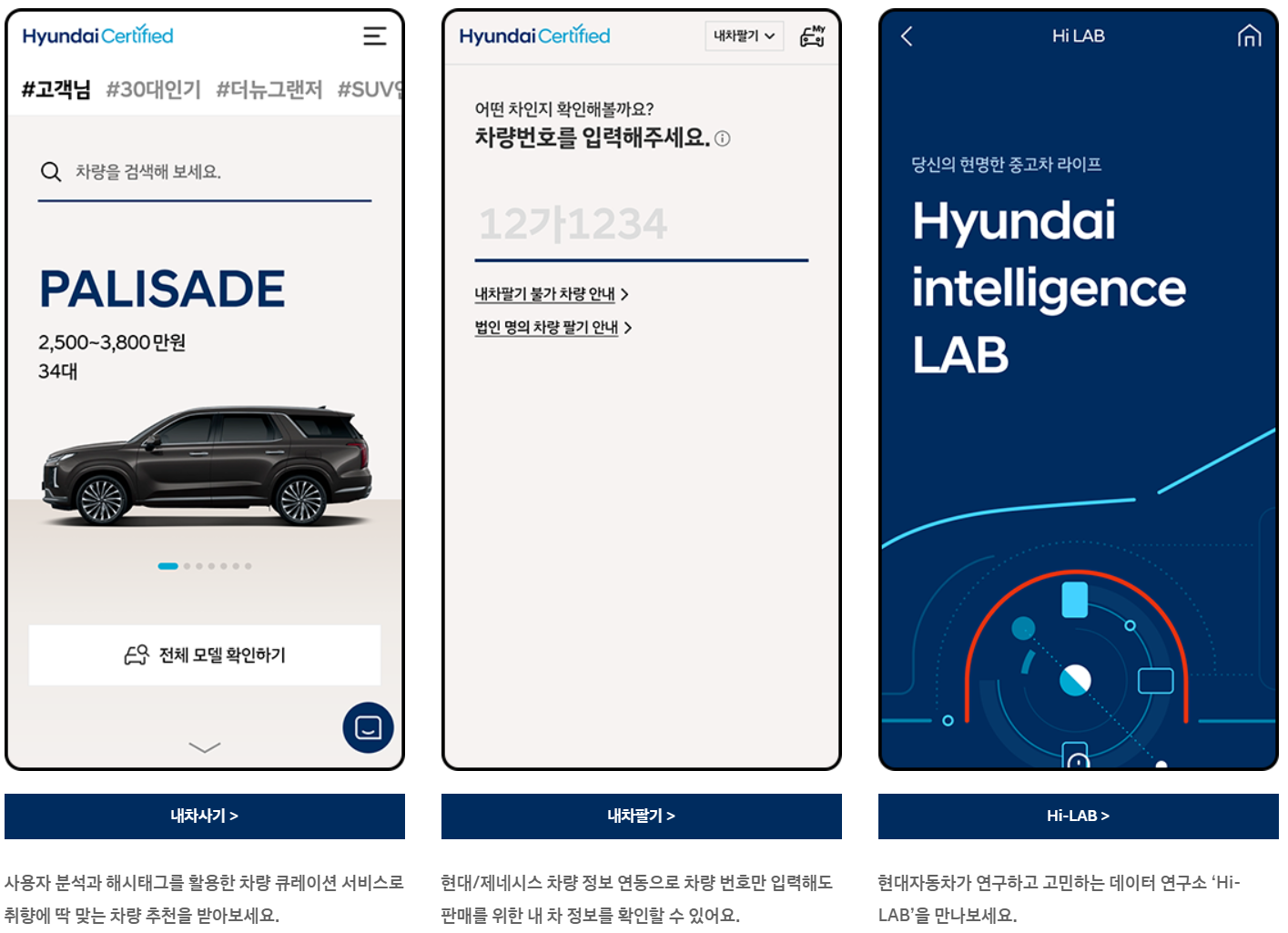 - 현대 인증중고차만큼 엄격한 진단 및 품질 관리를 거치지 않음