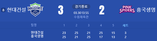 - 대진: 현대건설 vs 흥국생명