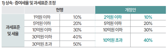 이로 인해 상속인들의 세 부담이 크게 줄어들게 됩니다. 특히 상속재산이 30억 원을 초과하는 경우, 세율이 50%에서 40%로 낮아지는 것은 큰 혜택을 제공합니다.